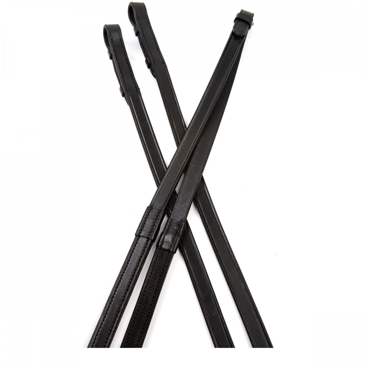 Collegiate One Sided Rubber Reins IVÂ are quality European leather with a rubber grip backing giving them the appearance of plain reins with hidden additional grip.