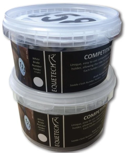 Equetech Bridle Competition Numbers exclusive to Equetech these unique competition numbers are designed for complete ease of use and simplicity. No fiddly, clumsy card numbers that get lost or break ! Designed with velcro attachments to attach to your bridle and Velcro numbers that can be changed quickly and efficiently by a simple velcro on design.