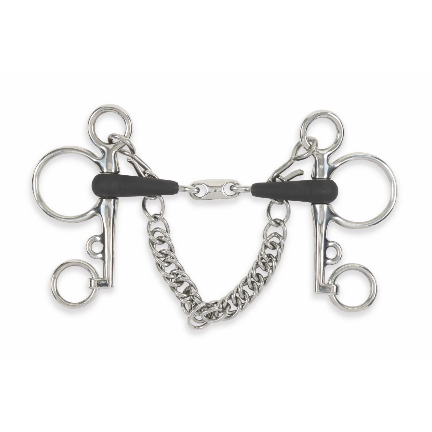 EquiKind + Pelham Peanut Link Bit this double jointed pelham is often used to help control. The double joint with lozenge will soften the nutcracker action.