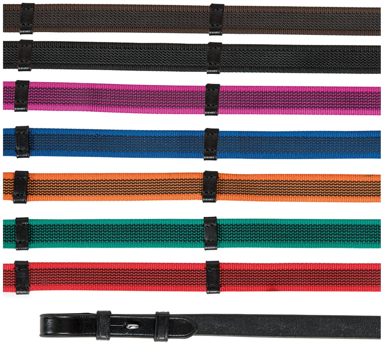 Gara Continental Rubber Grip Reins feature anti-slip rubber grips in bright colours to complete your look. Hand crafted with Aviemore leather, hook stud billets and stainless steel fittings.