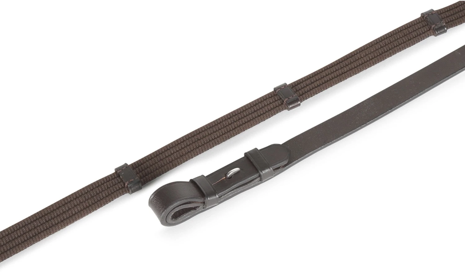 Gara Continental Web Reins classic continental web reins with hook stud billets and stainless steel fittings.