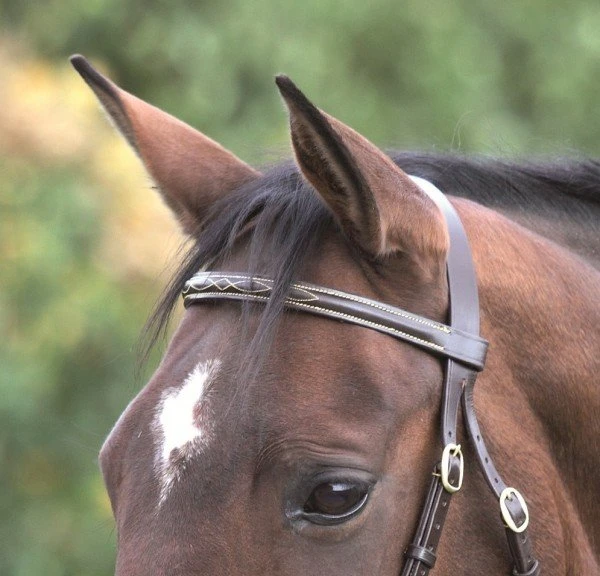 Gara Fancy Stitched In Hand bridle this In hand leather bridle features fancy stitching on the noseband and browband, solid brass fittings and 5/8″ (16 mm) cheeks.