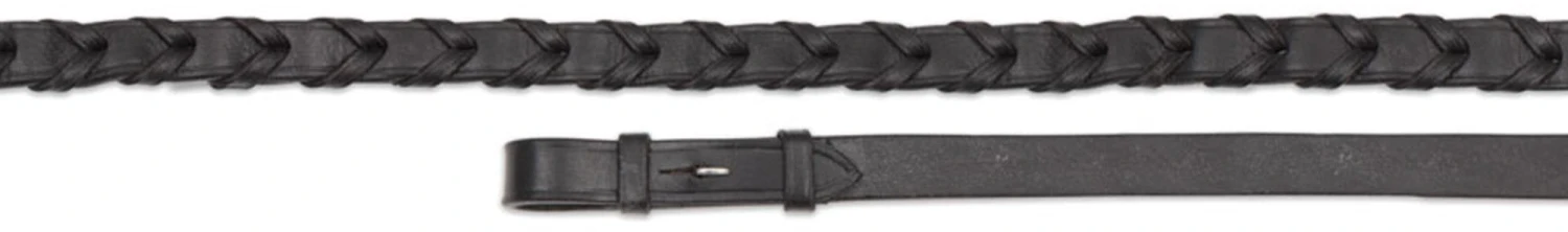 Gara Laced Leather Reins are a traditional leather laced reins with hook stud billets and stainless steel fittings.