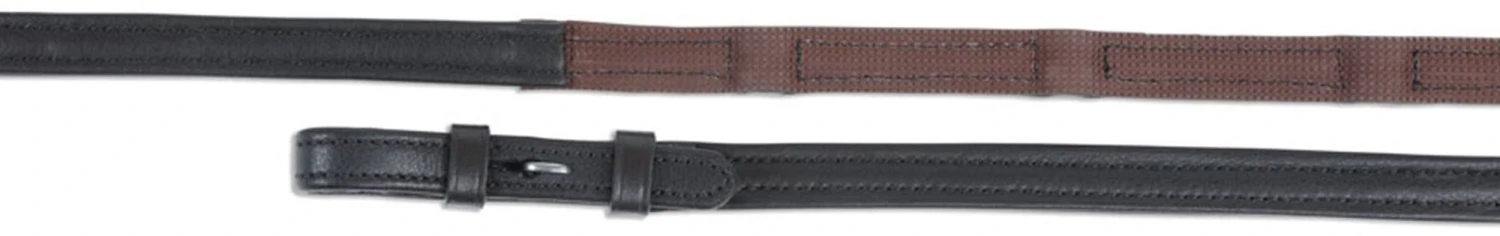 Gara Softy Dressage Reins combines a soft leather outer with a fine rubber pimple grip lining, these dressage reins are smart yet effective. Spaced leather stoppers for improved, even grip on both reins.