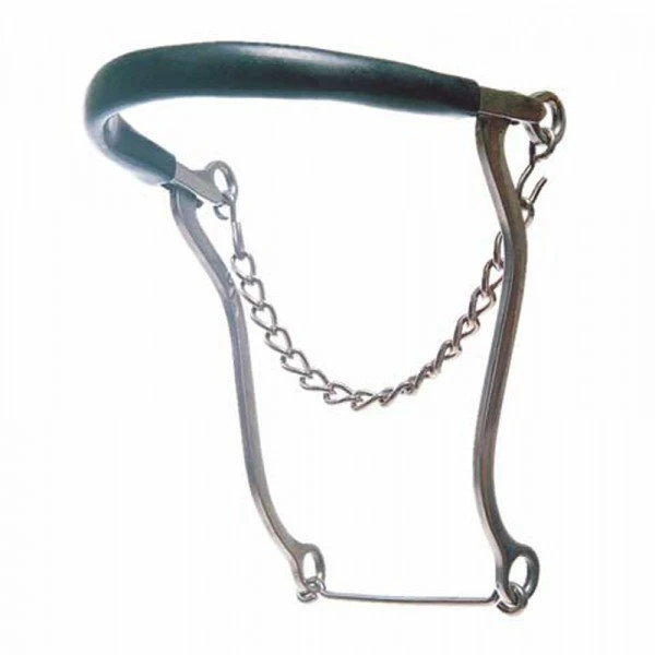Hackamore German Rubber Bit rubber nose hackamores are ideal for use on sensitive or difficult horses and work by applying pressure on the nose, jaw and poll. Used carefully they can be very effective. Sometimes used if your horse has problems with bitting or maybe a sore mouth for various reasons, effectively you are riding in a bitless bridle but with the arch of the side shank giving you the leverage for control.