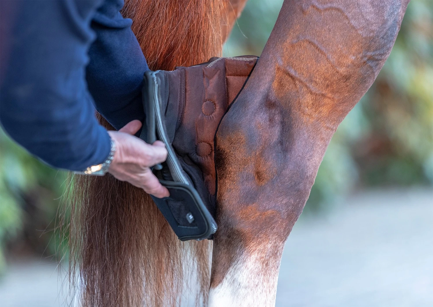 LeMieux Conductive Magnotherapy Hock Boots herald a new approach to magnetic therapy. Unique inner liners contain a woven layer of steel fibres directly under 18 powerful 2600 gauss magnets. The steel filaments conduct magnetic waves evenly around the lining bringing the whole leg within the magnetic field
