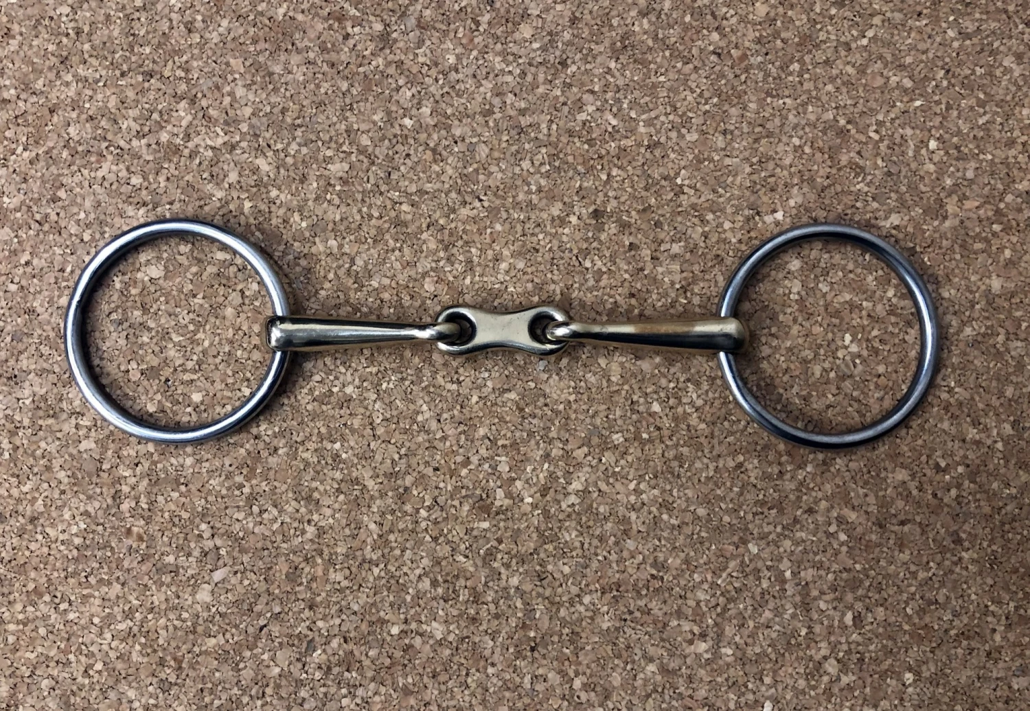Loose Ring Dorado Thin French Link Horse Bit in a copper alloy to encourage salivation this can be a comfortable bit for a horse. The french link has a kind central plate avoiding the nutcracker action of a jointed bit. Overall a good schooling bit in a slightly thinner version.