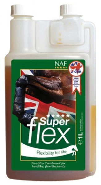NAF Five Star Superflex Liquid superflex is the right combination; a scientifically balanced ratio of readily absorbed Glucosamine and Chondroitin, the highest quality MSM plus the added benefits of a powerful anti-oxidant formula, exclusively designed to address excess free radical build up around the joint. Horses’ joints have to cope with extreme forces and it is commonly the cartilage that is the first part to show wear and tear. The key cartilage nutrients, Glucosamine Sulphate, MSM, Chondroitin Sulphate and Hyaluronic acid (HA) are well known for their support for the health of both cartilage, and the thick synovial fluid that oils the joint. Research recommends that feeding a combination of the key nutrients allows them to work together more effectively than any one nutrient alone. Getting the combination right is crucial. Five Star Superflex contains the right combination of key nutrients in the optimum ratios, developed over twenty five years of working with sound horses. Naturally sourced antioxidants are also included to work synergistically with Glucosamine and MSM to support joint health.