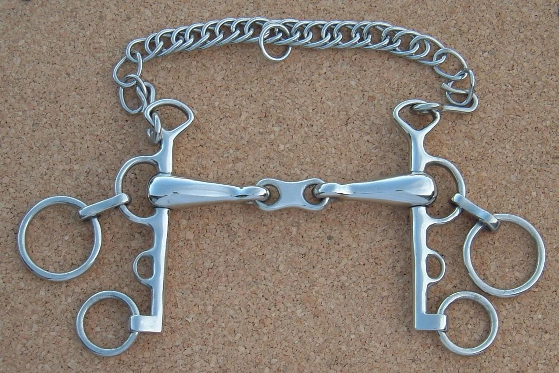 Pelham French Link Rugby Bit the Rugby Pelham is widely used in showing as an alternative to the Weymouth and bradoon. It gives the look of a double bridle as this bit has to be used with a double bridle which has an extra bradoon head slip, as you would have with a Weymouth and Bradoon, this bit also has to be worn with two reins. The Rugby Pelham has an extra loose ring which is connected by a link on the snaffle ring, which is also supposed to give a more direct contact to the mouthpiece than that of a normal pelham.