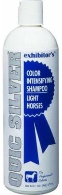 Quic Silver Shampoo intensifies all natural colours within coat. Creates incredible silver and golden highlights. Excellent stain remover, platinum white markings. Best on white-to-medium greys, albinos, creams and palominos, whether solid, Pinto/Paint or Appaloosa.