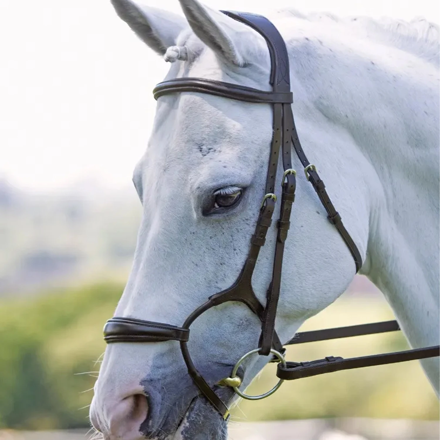 Rapida Rolled Padded Cavesson Bridle the contemporary design of the Velociti Rolled Padded Cavesson Bridle features a noseband which enables full adjustability in its positioning for a custom fit. Minimising pressure around the jaw and teeth, the noseband works with the horse’s anatomy for optimum performance. Tech details: FreedomFit headpiece designed to relieve pressure thanks to the wide, cushioned crown with poll gap and cutaway ear profile; soft leather combined with generous, anti-shock padding on the headpiece, browband and noseband; elegant profile due to sleek, angled throatlash; high shine stainless steel harness buckles.