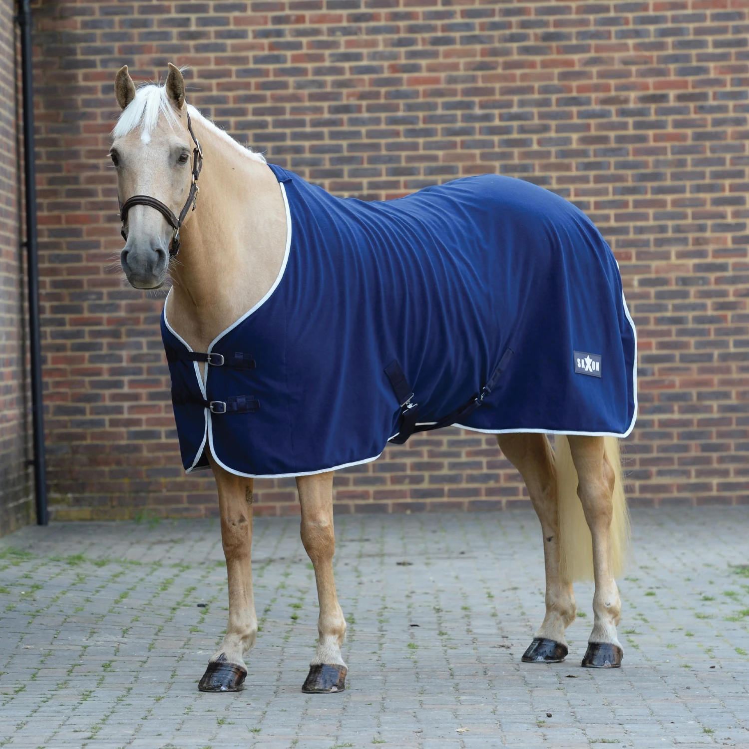 Saxon Fleece Standard Neck Navy Rug Suede fleece ideal for cooling after exercise or travelling, the Saxon Fleece Standard Neck is a lightweight rug with stylish contrast binding. Featuring a twin adjustable buckle front closure, twin low cross surcingles, fleece wither relief and tail cord.