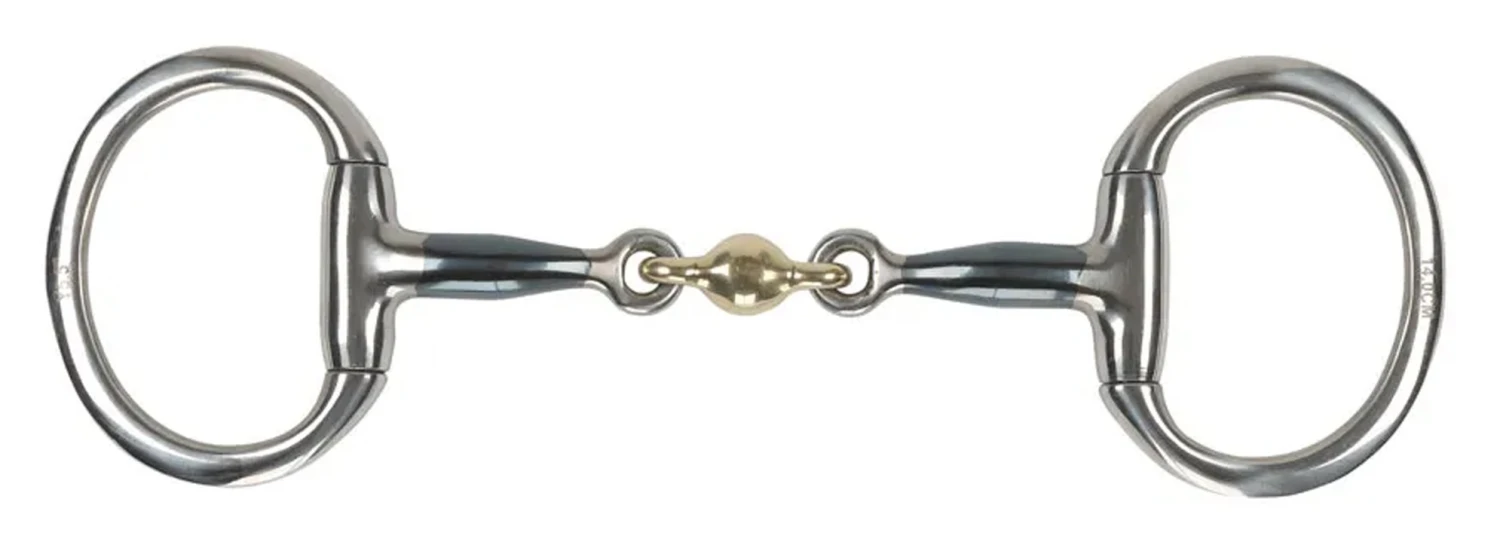 Shires Blue Sweet Iron Flat Eggbutt with Lozenge have fixed rings which prevent pinching, whilst the brass alloy double joint distributes pressure over both the tongue and bars of the mouth to encourage mouthing and contact. Mouthpiece thickness: 14mm. Cheek height: 55mm (4.5″, 5″), 75mm (5.5″, 6″).