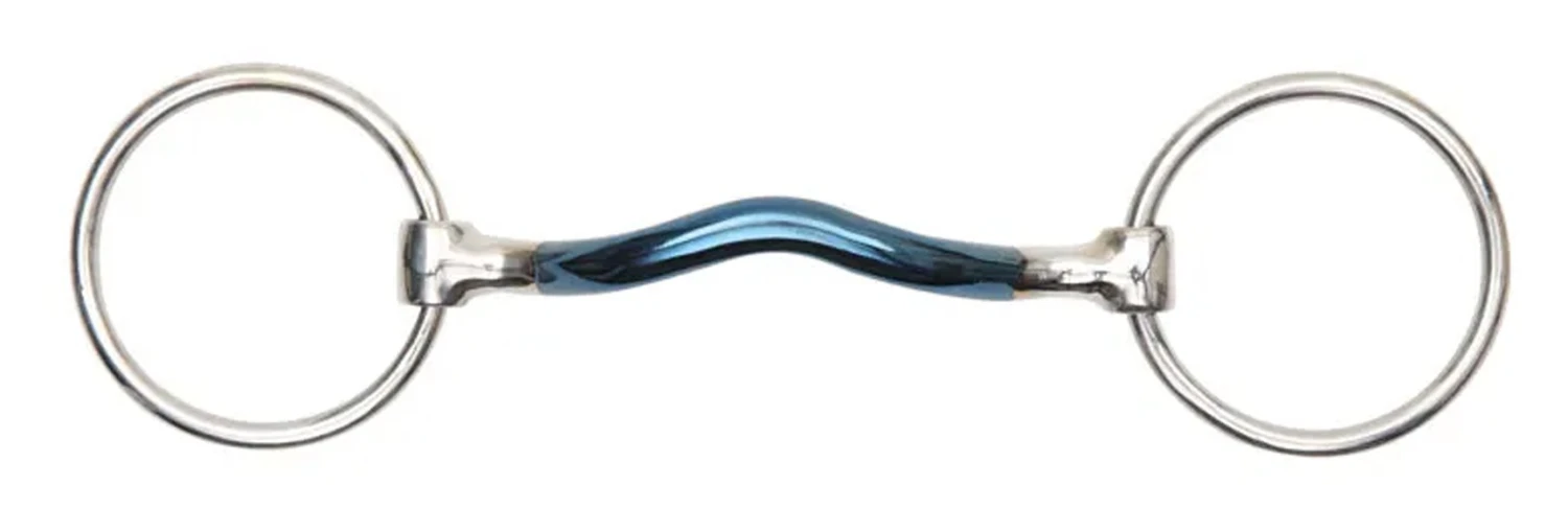 Shires Blue Sweet Iron Loose Ring with Mullen Mouth is very stable in the horse?s mouth. It has a medium port creating space for the tongue and relieving pressure. Mouthpiece thickness: 12mm. Cheek height: 65mm.