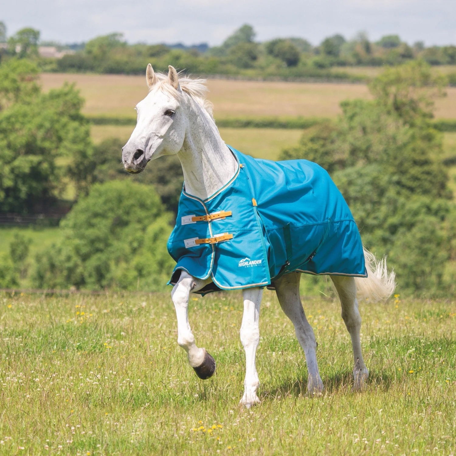 Shires Highlander Original Lite Turnout Rug For comfort during rainy warmer days, the Highlander Lite turnout rug keeps the horse dry without restricting movement. Key features: deep shoulder gussets, fully lined, twin buckle chest fastenings, adjustable cross surcingles, adjustable fillet strap, integrated leg strap loops, tail flap.