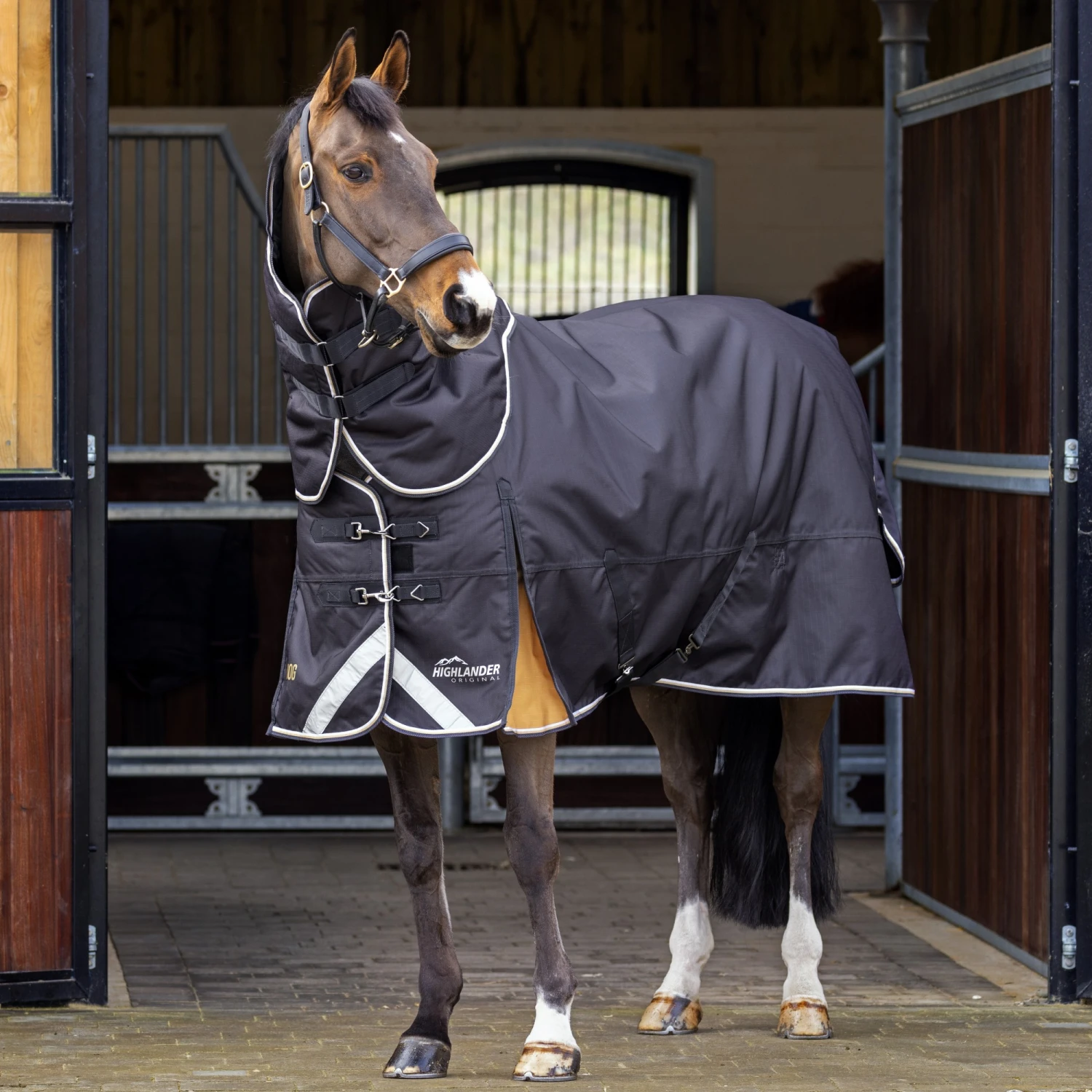Shires Highlander Plus 200 Turnout Rug& Neck Set Black a sophisticated rug range providing enhanced protection and luxurious comfort for the turned out horse. Balancing optimum strength-to-weight ratio with a ripstop weave to prevent the spread of small tears, Highlander Plus rugs offer excellent resilience. A 100g polyfill lining takes the chill off cooler field-days and nights. Breathability and comfort is teamed with deep shoulder gussets for freedom and clip chest straps for fitting speed. The neck is secured with touch close loops to three D-rings on the rug, and is fastened around the neck using quick fit touch close straps.