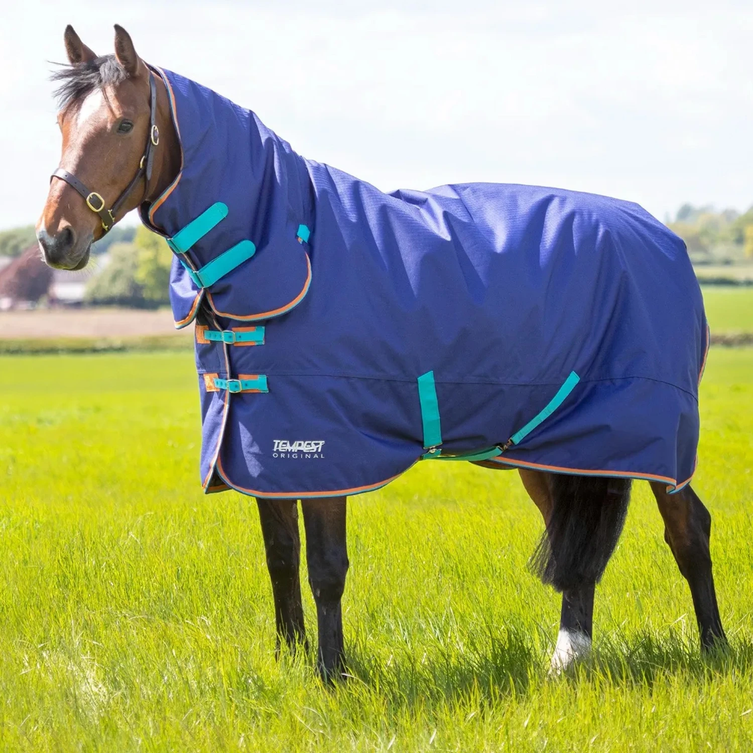 Shires Tempest Original 100 Combo Turnout Rug is suitable for cool nights and days when a heavier weight rug is too warm, or for hardy horses in colder weather. An integrated contour neck cover makes this an ideal combo for keeping coats clean. The neck fastens with double sided touch close straps. Key features: fully lined, adjustable buckle chest straps, adjustable cross surcingles, fillet strap, tail flap.