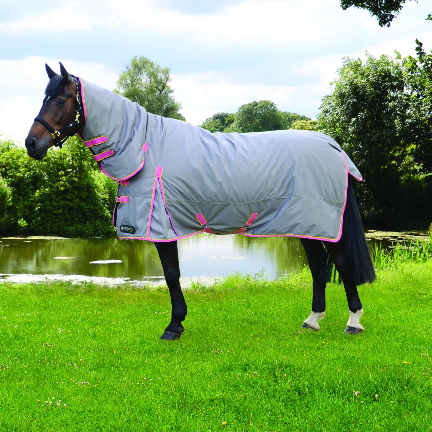 HY Range StormX Original 300 Combi Turnout Rug. Beat the cold and wet weather with this heavyweight turnout rug. Your horse will be kept toasty and warm with the 300g fill and the 600 denier outer fabric will ensure your horse remains dry. A fixed neck cover and a large tail flap add extra protection from the elements. Touch tape fastenings on the neck and adjustable surcingle’s, leg straps and chest buckles keep the rug securely in place.