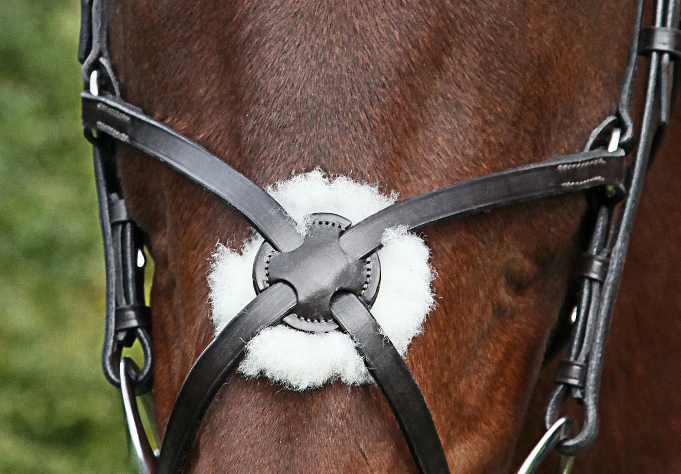 Townfields Spanish Grackle Noseband helps to keep the jaw closed, the ring on the side is set slightly higher on the face than a normal grackle. Includes a soft sheepskin lined nose disc. Part of our own brand of Best quality leather nosebands.