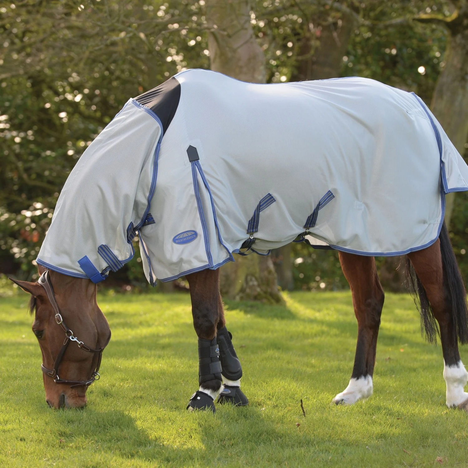 WeatherBeeta ComFitec Airflow II Horse Fly Rug a soft, durable polyester mesh offering a good coverage with NEW Ultra belly wrap. Premium protection and elastic insert at wither for additional comfort when grazing. Ezi-Clip front closure, traditional side gusset for natural movement, 210T nylon lined shoulders, mane and tail flap and elasticated, adjustable and removeble leg straps. Bullet features as follows.