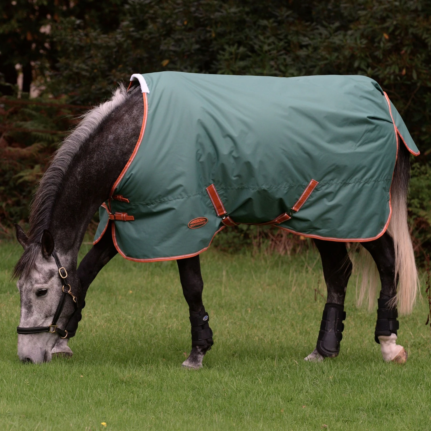 WeatherBeeta ComFiTec Tyro Standard Medium Green Turnout Rug protection at an affordable price. The WeatherBeeta ComFiTec Tyro Standard Neck Medium features a tough 600 denier ripstop outer with repel shell coating that is both waterproof and breathable with a warm 200g of polyfill. The 210 denier strong and durable lining is smooth, providing less friction and rubbing of the coat while enhancing shine with antibacterial properties which assist to ensure it doesn’t absorb sweat and moisture. Featuring twin adjustable buckle front closure, adjustable tail cord with quick clips, twin low cross surcingles and standard tail flap. 3 D-rings to allow for attachment of neck rugs (neck rug sold separately). Hydrostatic pressure tested to 2000mm plus. Moisture vapour tested to 2000g/m2 plus.