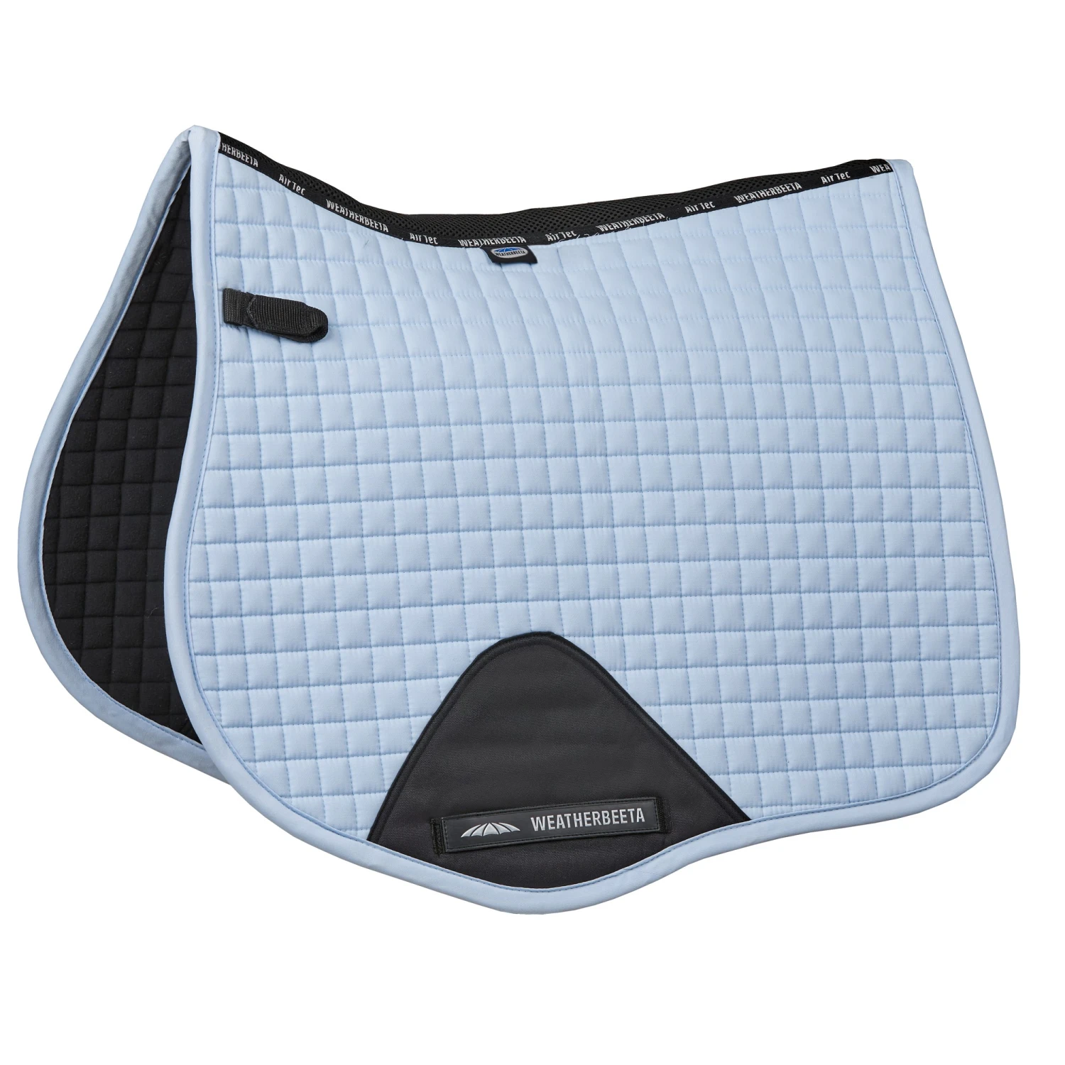 WeatherBeeta Prime All Purpose Ice Blue Saddle Pad is a durable cotton pad with a polyester wick easy lining helping to keep your horse cool, dry and comfortable. The breathable mesh spine allows extra airflow to the horse’s back, with an All Purpose shape and high wither design to allow for extra space where needed. The covered girth patch offers durability and the touch tape girth loops allow for a versatile fit. Easy attachment to the D-rings is made simple with short touch tape loops for a secure fit and the high wither design allows for extra space to assure maximum comfort for the horse.