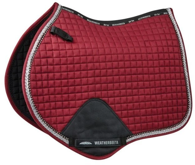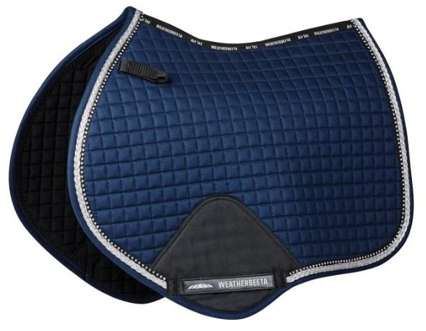 WeatherBeeta Prime Bling Horse Saddle Pad feature crystal detailing and rope braiding for added style and class and are available in Dressage and Jump. This durable jump cotton pad has a wick easy lining to help keep your horse cool, dry and comfortable. The breathable mesh spine allows for extra airflow and the high wither design allows extra space where needed. Matching ear bonnet and bandages available.