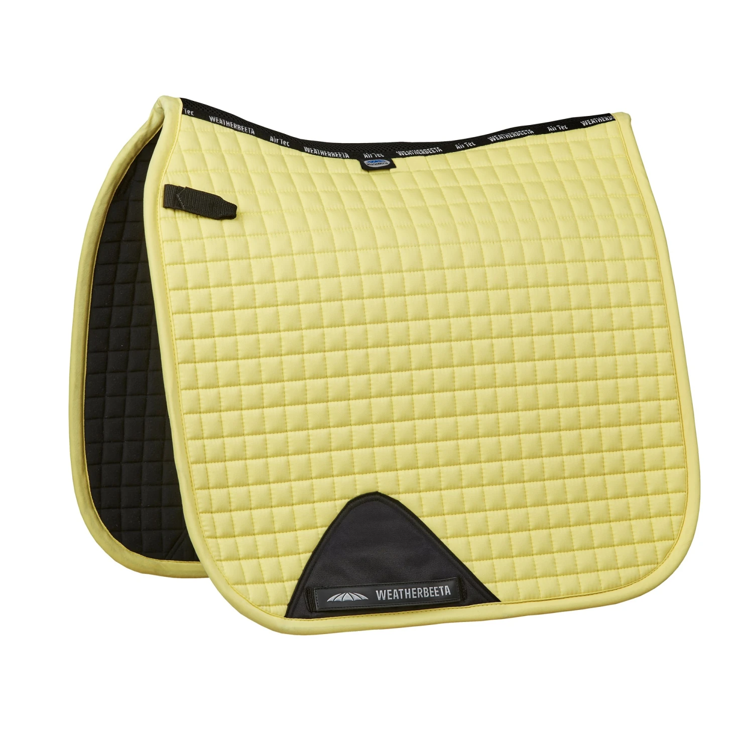 Weatherbeeta Prime Dressage Butter Saddle Pad is a durable cotton pad with a polyester wick easy lining helping to keep your horse cool, dry and comfortable. The breathable mesh spine allows extra airflow to the horse’s back, whilst the longer shape is designed to sit perfectly with a dressage saddle and the high wither design allows extra space where needed. The covered girth patch offers durability and the touch tape girth loops allow for a versatile fit. Easy attachment to the D-rings is made simple with short touch tape loops for a secure fit and the high wither design allows for extra space to assure maximum comfort for the horse.