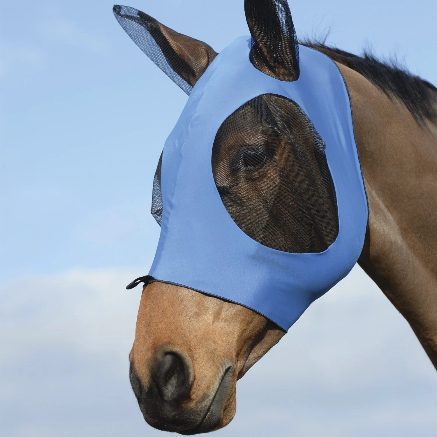WeatherBeeta Stretch Bug Eye Saver With Ears Royal Blue/Black is a lightweight, soft and flexible nylon stretch mask with mesh ears and raised mesh screens over each eye for unobstructed vision. The stretch fabric offers a secure fit around the horse s head preventing insects from entering the mask. Offering 65%+ UV block.